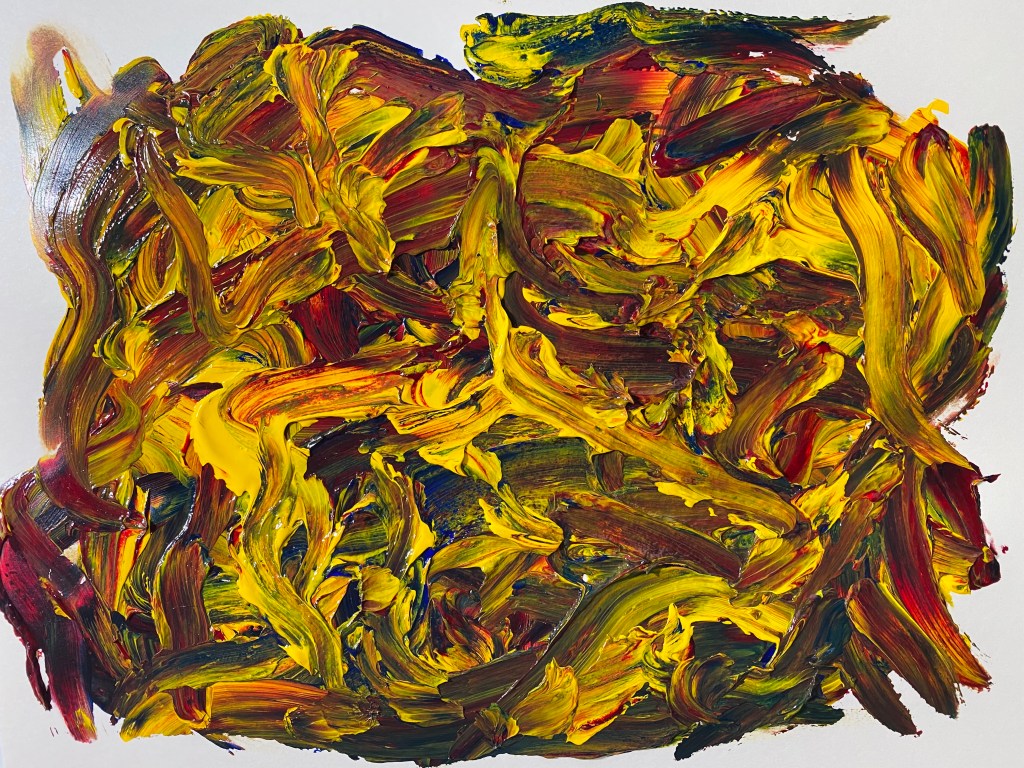 My partner, Brian Hoang, and I decided to paint with the 3 foundation colors of art. Red, blue and yellow. We first began by dumping paint on random areas of the page and then, we just went for it. Seeing the paint under my nails did give me a bit of anxiety partly because I am a neat freak that likes my things extremely organized. Also, having no guideline of what to paint exactly didn’t help either, there was confusion. I was definitely anticipating what we were going to produce when we were done, but not surprisingly, I didn’t find comfort in that idea. It really confirmed in my head that I hated not having any order with anything that I do. I do really enjoy realism and being able to see exactly what is trying to be portrayed. Crisp lines and bright colors are definitely pleasing to me. I do however, appreciate the idea behind abstraction where it can be interpreted in many ways, but visually it’s just not my cup of tea.