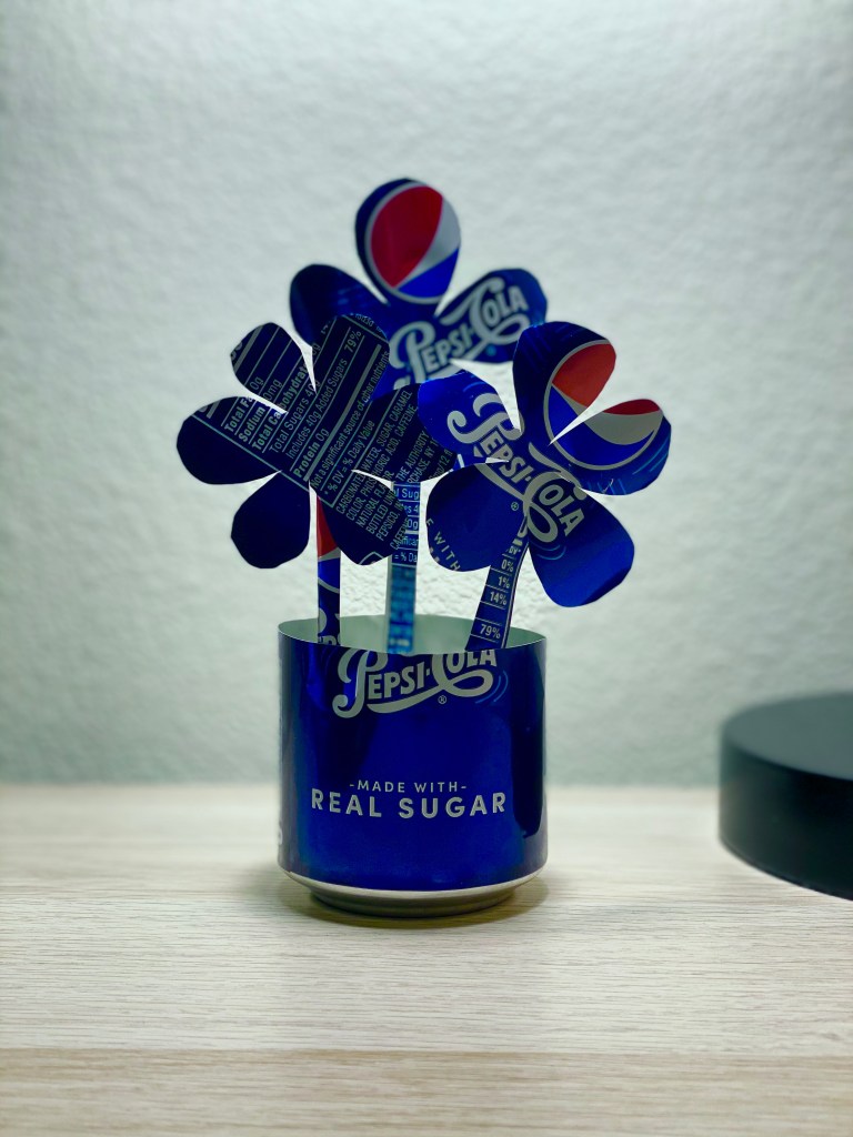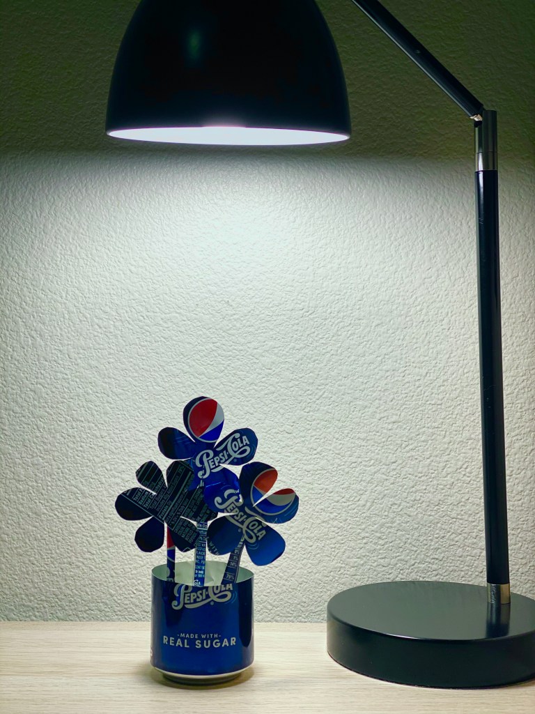 This is why I decided to make flowers out of aluminum soda cans because it is ironic to me that we can make materials that last forever, but also hurt the Earth which slowly increases its chance of becoming inhabitable which is something that we’d want to stay forever. There are other materials that could have been used to give the same feeling if I were to make this sculpture with something else (newspaper, plastic bottles, cardboard), but considering we are in quarantine I used what I could! You can say that this sculpture is sustainable because it requires no maintenance or monitoring and can last for hundreds of years.